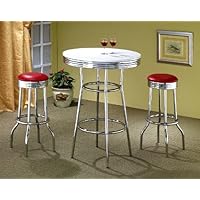 Click Here to see more reviews about: 3pcs Retro Style Red & Chrome Bar Table & 2 Stools Set