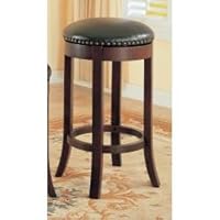 (More customer reviews)Purchased two of these. Needed a backless, bar height stool in a dark color that was sturdy. This stool fit the bill. It was simple to put together. The fit and finish was awesome and I was pleasantly surprised to find that the swivel mechanicals were of such high quality. The stool is solid and comfortable for all body sizes. We had an open house and had multiple comments on the sturdiness and beauty of the stools. It easily held heavier weights without worry of sturdiness. The covering has the look and feel of leather and the nail heads are real not fake. The covering is black in color but it fits nicely with our dark chocolate brown leather sofa. If you are looking for a quality, solid stool that will hold all body types including heavier weights I would highly recommend this stool.